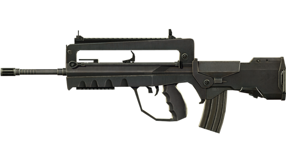 フランス軍御用達のアサルトライフルで、ガス・ポートがない長い銃身であるため、命中精度が高く、反動を抑えたデザイン性の採用により、連射の安定性と良好な集弾性を兼ね備えている。